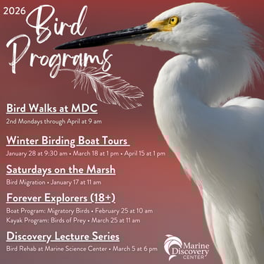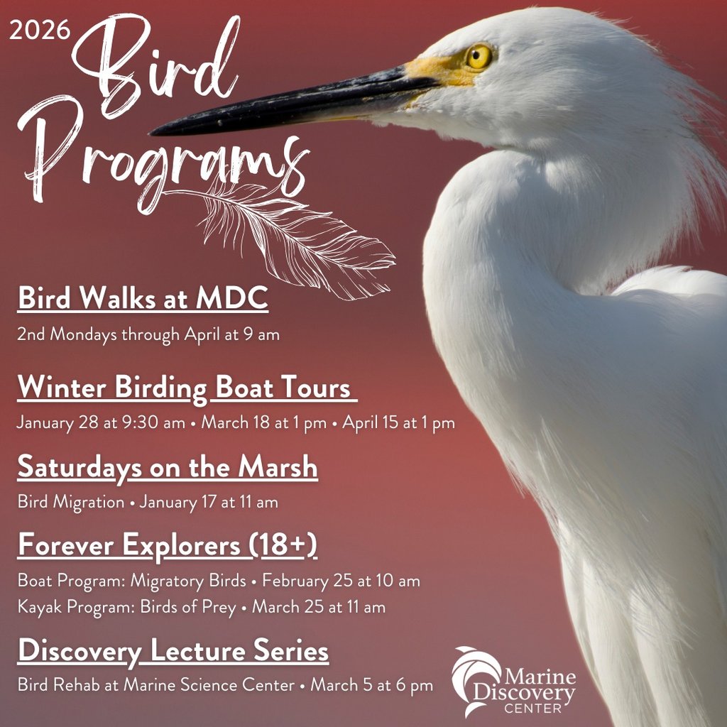 These programs are all in 2026 and held at the Marine Discovery Center in New Smyrna Beach. Click to visit their online calendar to view info and booking details for all of our programs at https://marinediscoverycenter.org/mdc-news/calendar/