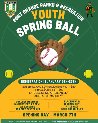 Now is the time to register for spring baseball and softball in Port Orange!