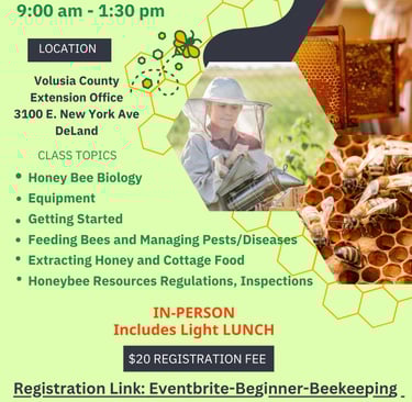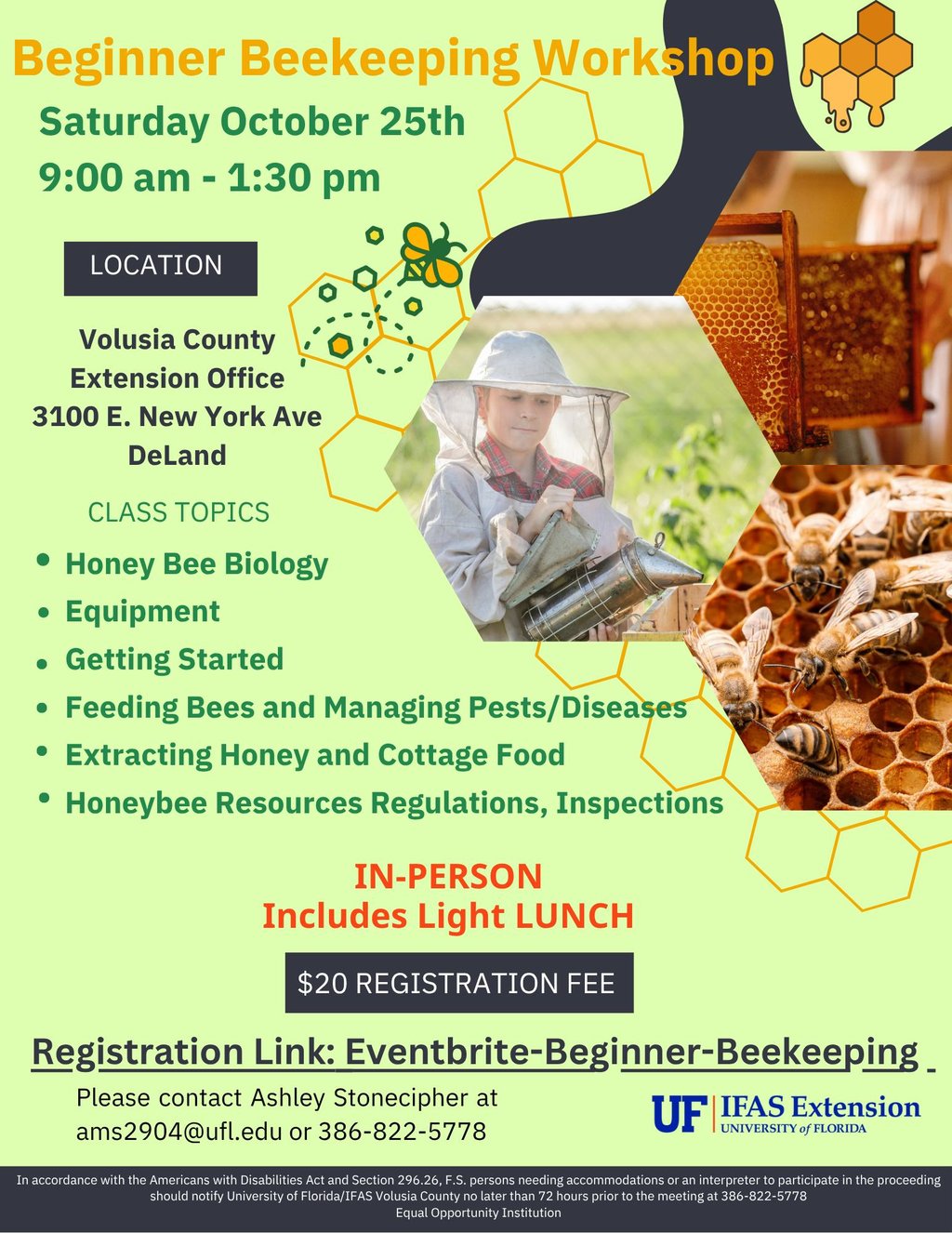 Interested in learning how to be a beekeeper? Register for this upcoming workshop, which will be held in DeLand on October 25, 2025.