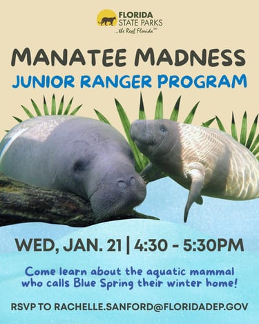 RANGERS to join us on Wednesday, January 21, 2026 for our Junior Ranger Program Manatee Madness.