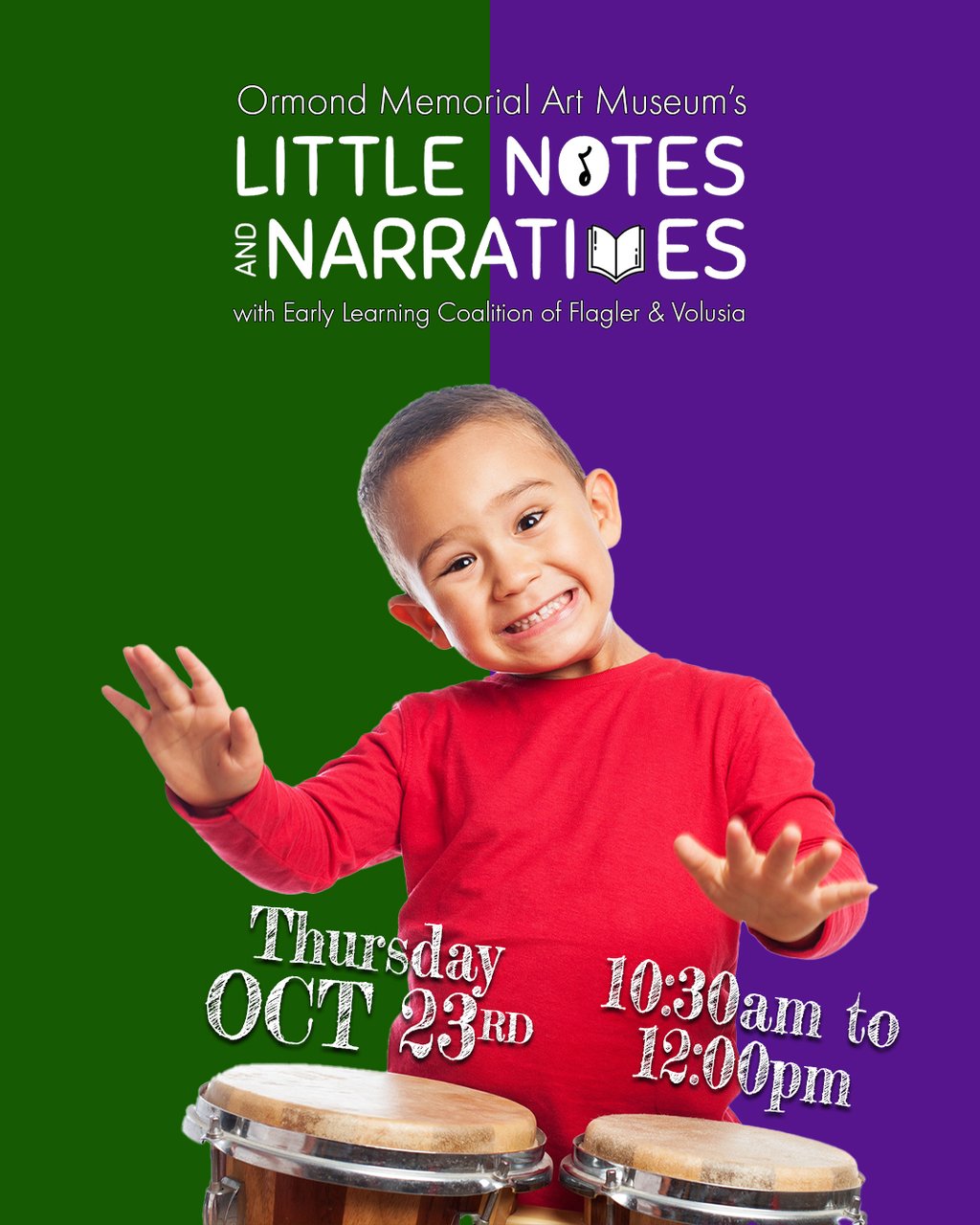 Presented with the Early Learning Coalition of Flagler & Volusia, our Little Notes & Narratives program nurtures creativity, composition, and a love for music in a playful, supportive environment tailored to little musicians! Ages 3 to 5 will explore hands-on activities, engage with a variety of musical instruments (including rhythm sticks and drums), and experience an immersive story time reading. The 90-minute workshop is FREE, but registration is required. At least one parent/guardian/caregiver must be present during the entire workshop. Save a seat for your little one through the museum's website or by calling 386-676-3347.